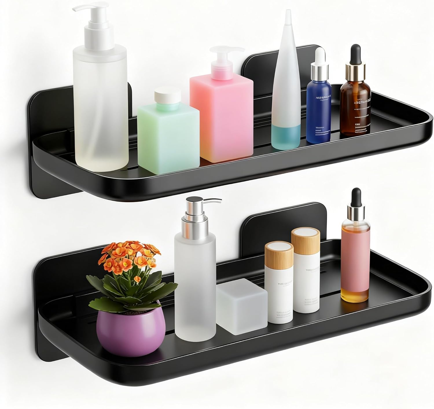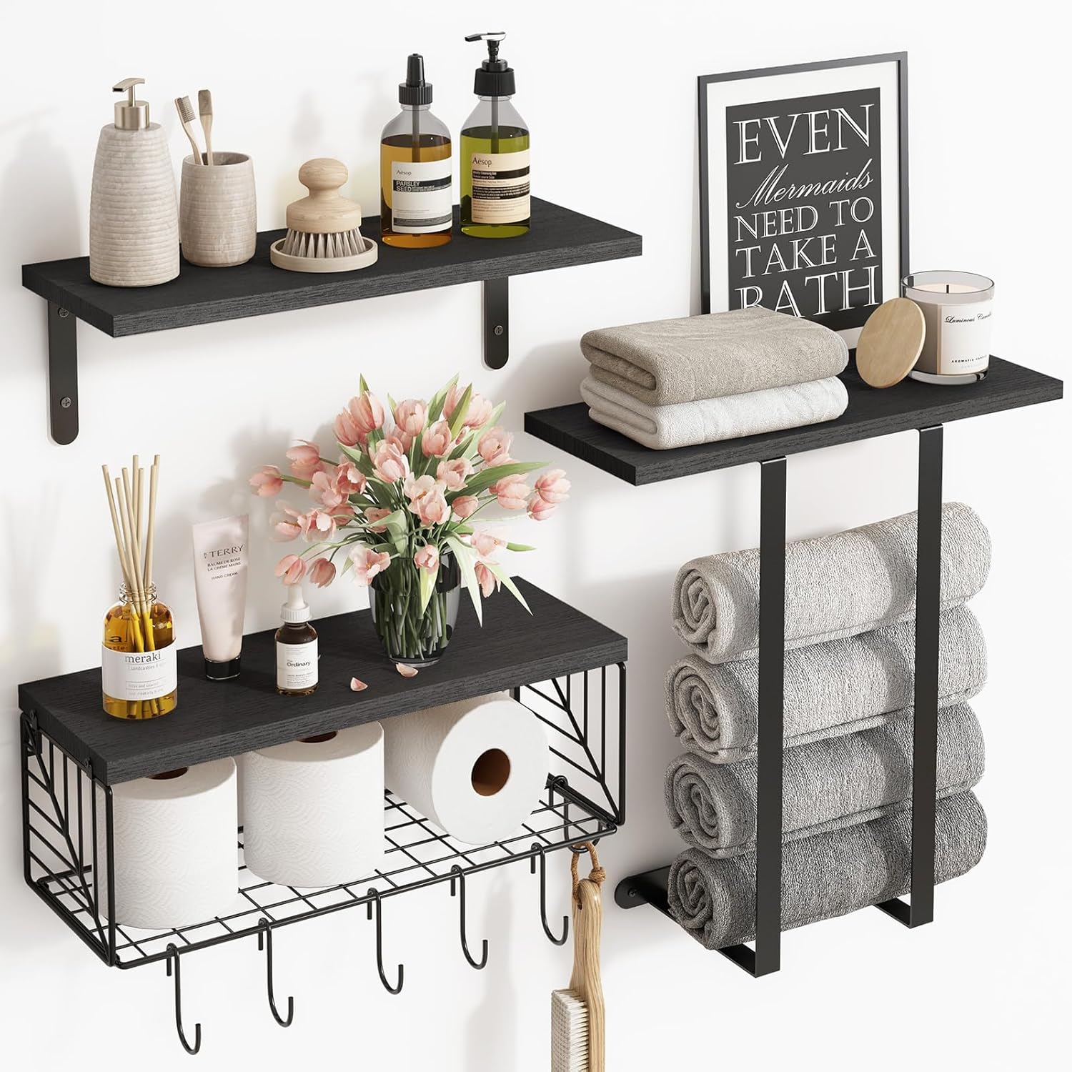 Bathroom Floating Shelves Over Toilet Wall Shelves Set with Towel Storage Rack for Bathroom Organization & Wall Decor(Black)