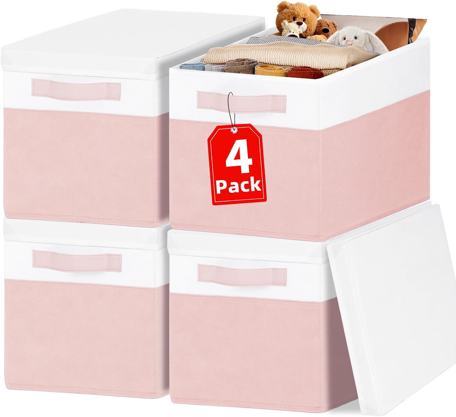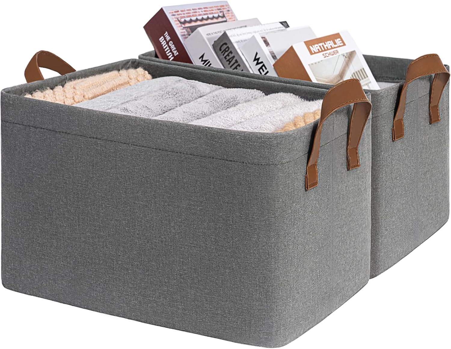 Collapsible Fabric Storage Cubes Organizer with Handles, Sturdy, Gray, 10.5-x-10.5-x-11-inch, Pack of 6