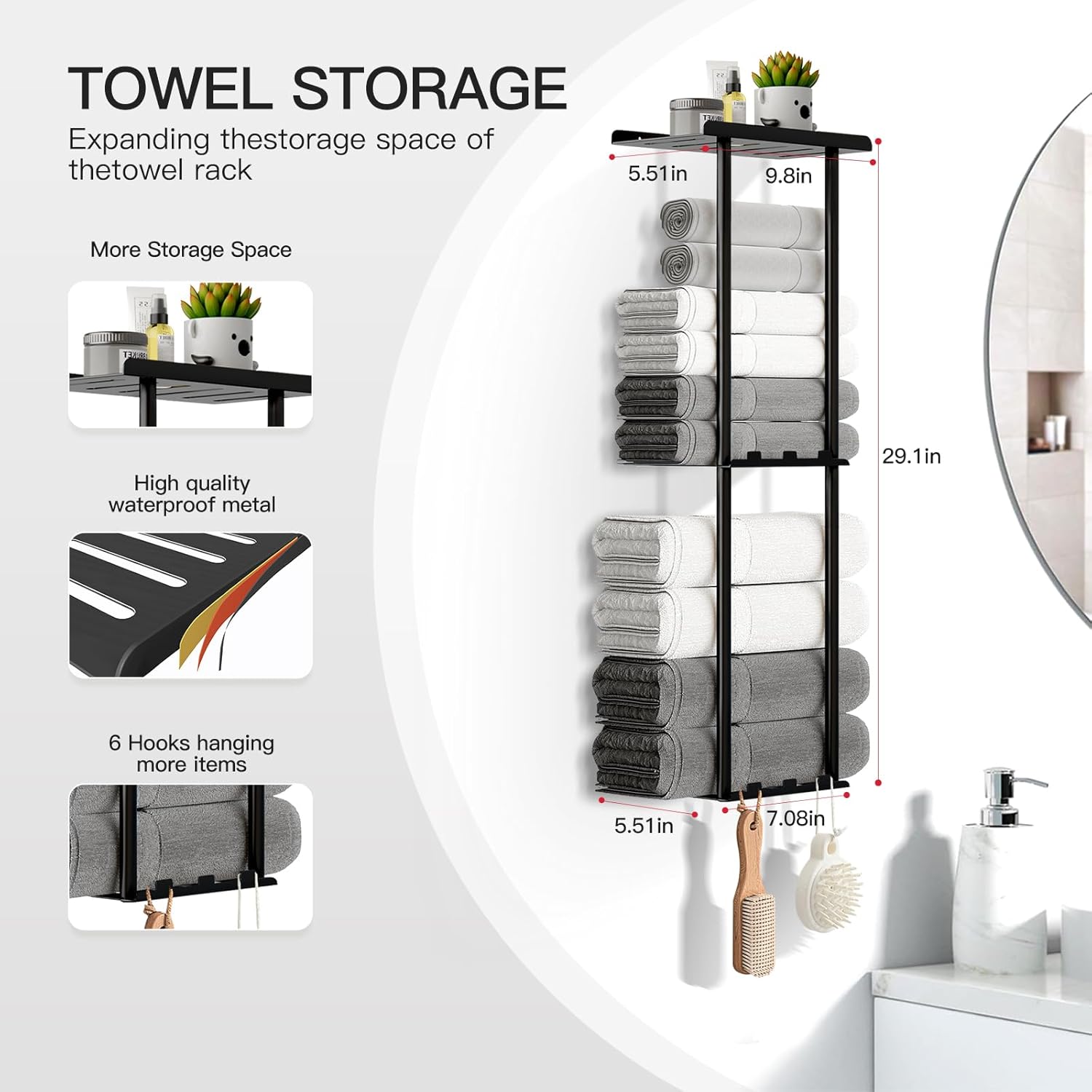 • Large Size: Large enough for Regular Rolls and Mega Rolls. 2.6″ × 2.7″ from the holding rod to the wall and the shelf. Feel free to hold your regular rolls paper/ large mega rolls paper and bath tissue.